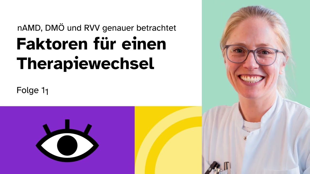 Die intravitreale operative Medikamentenapplikation (IVOM) bietet heute eine wichtige Behandlungsmöglichkeit für die feuchte altersabhängige Makuladegeneration (nAMD/feuchte AMD), das diabetische Makulaödem (DMÖ) und das Makulaödem infolge eines retinalen Venenverschlusses (RVV). Diese Therapie kann mit verschiedenen Medikamenten durchgeführt werden. Alle Medikamente haben das Ziel, wenn möglich die Netzhaut zu trocknen oder die Erkrankung zu stabilisieren. Es gibt aber Unterschiede zwischen den verschiedenen Medikamenten hinsichtlich der Wirkweisen und dem Abstand der einzelnen Spritzen. In diesem Video erläutert Univ.-Prof. Dr. med. Friederike Schaub der Universität Rostock, wann ein Wechsel des Medikamentes in Betracht gezogen werden kann und welche wichtige Rolle Sie als Patientin oder Patient dabei spielen können.