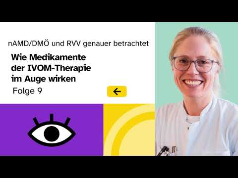 Die IVOM, also die intravitreale Medikamentenapplikation, kommt zur Behandlung der feuchten altersabhängigen Makuladegeneration (nAMD), des diabetischen Makulaödems (DMÖ) und des retinalen Venenverschlusses (RVV) zum Einsatz. In diesem Video erklärt Augenärztin Prof. Dr. Friederike Schaub die Vorteile der IVOM und wie genau die Medikamente wirken.