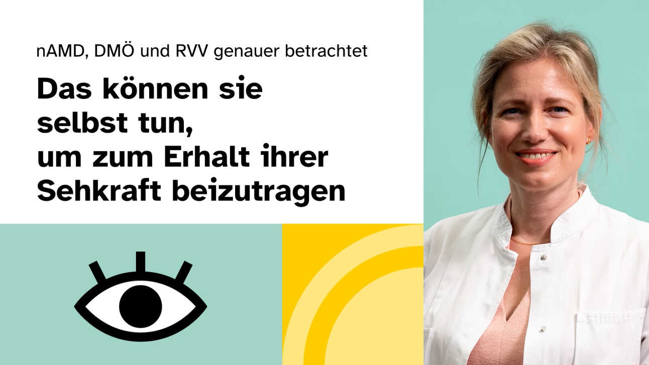 Fragen stellen, Termine wahrnehmen oder sich Unterstützung holen – jeder einzelne Schritt macht Ihren Weg leichter. Und egal, ob Sie Ruhe durch verständliche Informationen finden, Sicherheit aus klaren Abläufen schöpfen oder Kraft durch Menschen an Ihrer Seite gewinnen: Bei nAMD, DMÖ und RVV können Sie selbst viel dazu beitragen, wie gut Sie mit Ihrer Erkrankung leben.